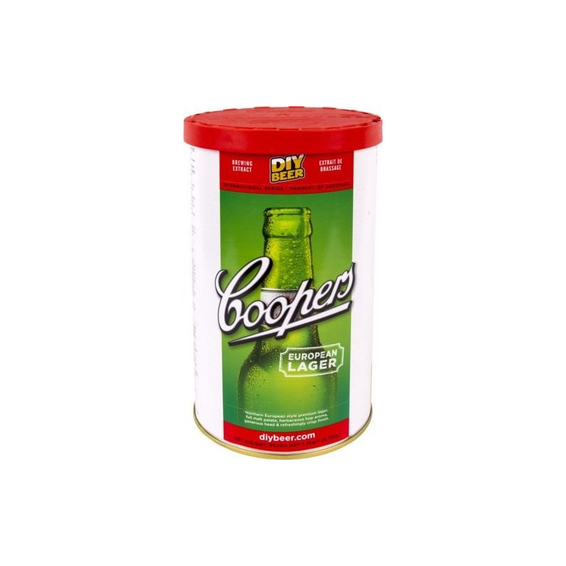 Koncentrat Coopers European Lager - Lager to klasyczne, europejskie jasne piwo z gęsta, koronkową, białą pianą. Jest ono lekkie w smaku, goryczka nie dominuje, miłe, słodowe wykończenie. Warzone według najlepszych receptur europejskich piwowarów.