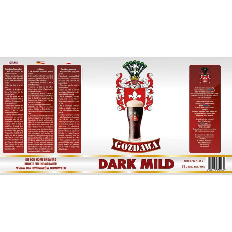 Zestaw zawiera nachmielony ekstrakt piwo domowe Dark Ale 1,7 kg wraz z dedykowanymi drożdżami górnej fermentacji do tego stylu.