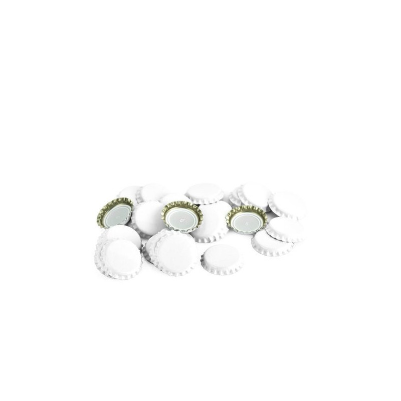 Oferujemy zestaw 100 sztuk kapsli, kolor biały. Silikonowa wklejka-uszczelka od spodu.