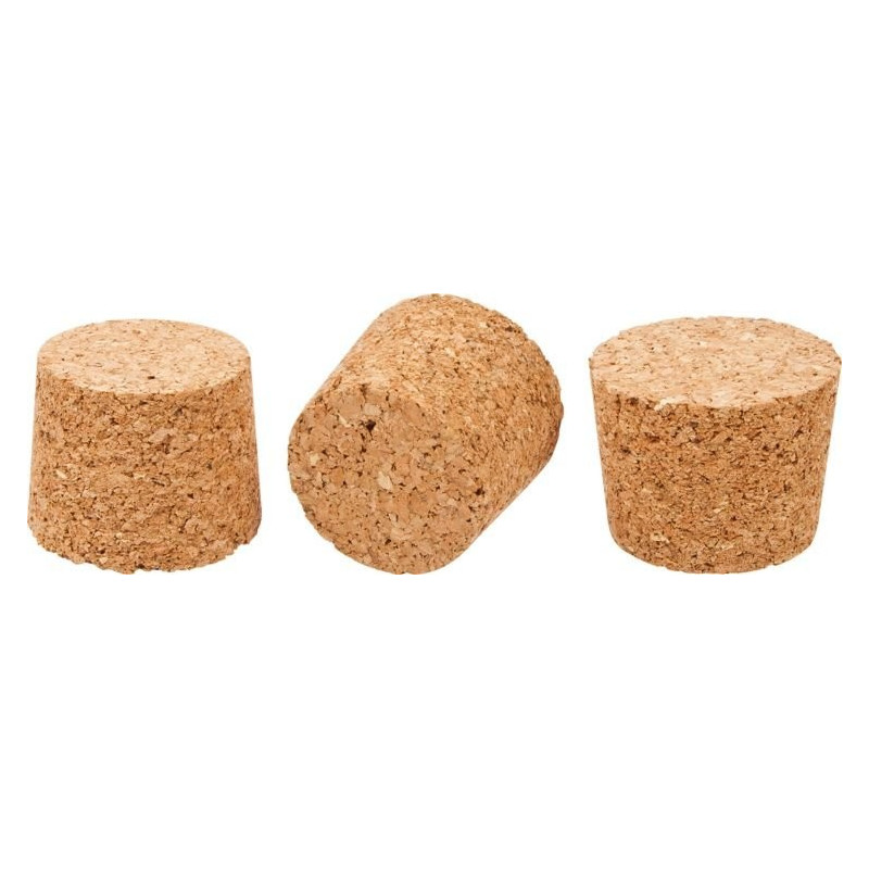Korek z korka, stożkowy dopasowany do butelek o średnicy wewnętrznej szyjki ok 19-21 mm.