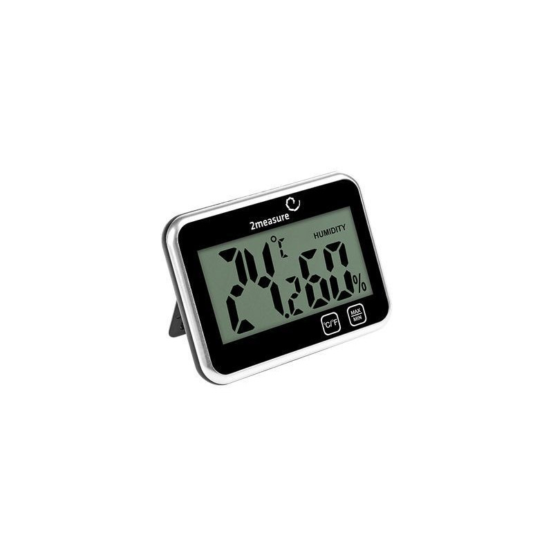 Nowoczesny termometr elektroniczny z higrometrem. Urządzenie stojące.