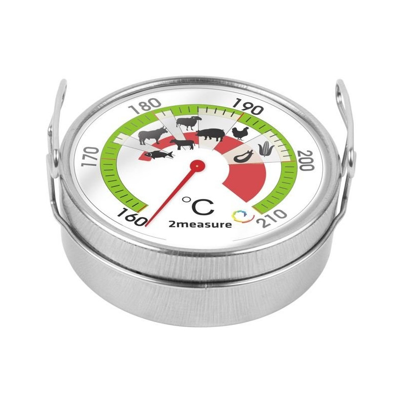 Poręczny termometr grillowy, przeznaczony do umieszczania na ruszcie, umożliwia ciągłą kontrolę temperatury. Wskazuje optymalne temperatury grillowania różnych rodzajów mięs, którym przypisano czytelne ikonki. Specjalne uchwyty ułatwiają bezpieczne przesuwanie i wyjmowanie urządzenia z rozgrzanego rusztu.