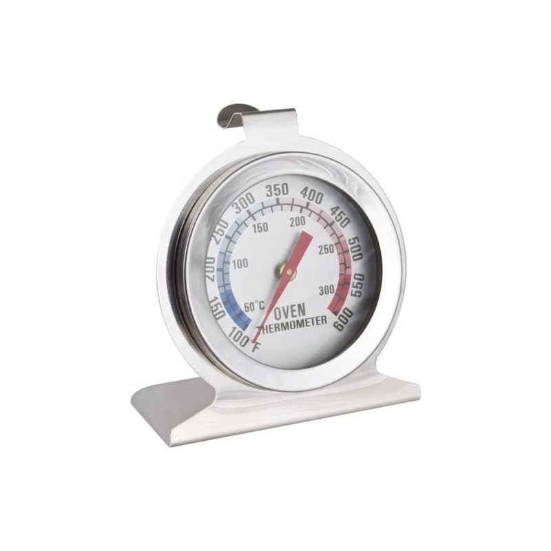 Solidny, wykonany ze stali nierdzewnej termometr do piekarnika precyzyjnie wskazuje temperaturę pieczenia zarówno w skali Celsjusza jak i Farenheita.Termometr można postawić lub zawiesić wewnątrz piekarnika.